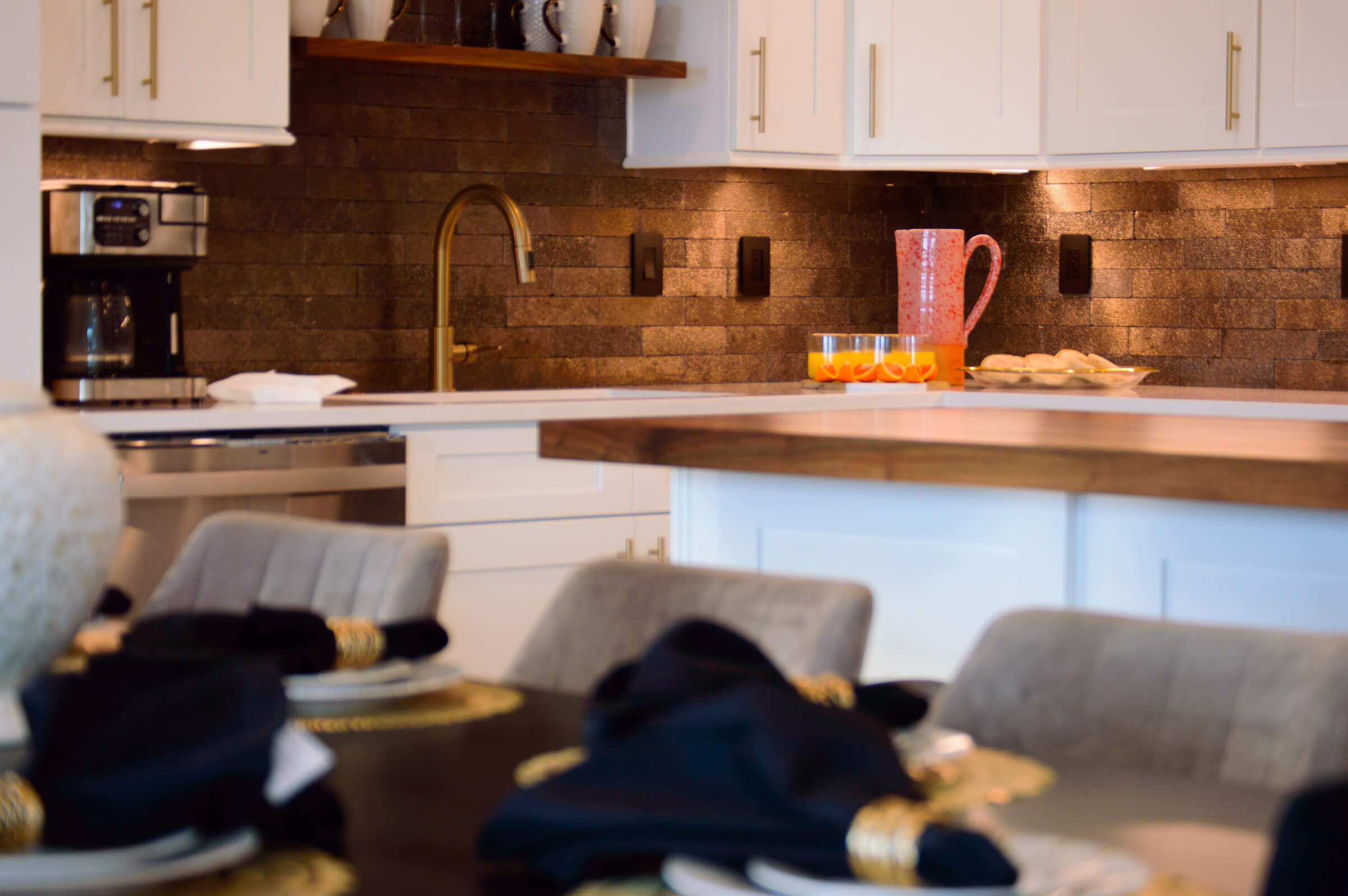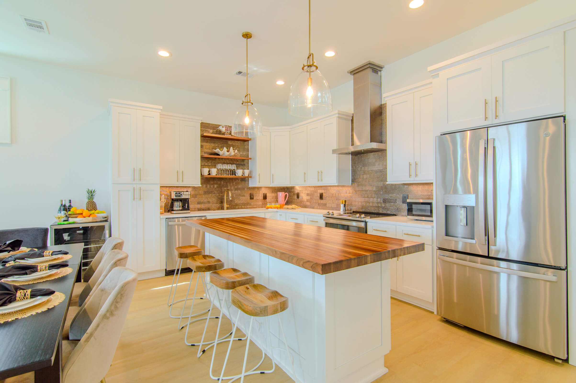 Large dining table for 8 people plus 4 barstools at the island for family gatherings