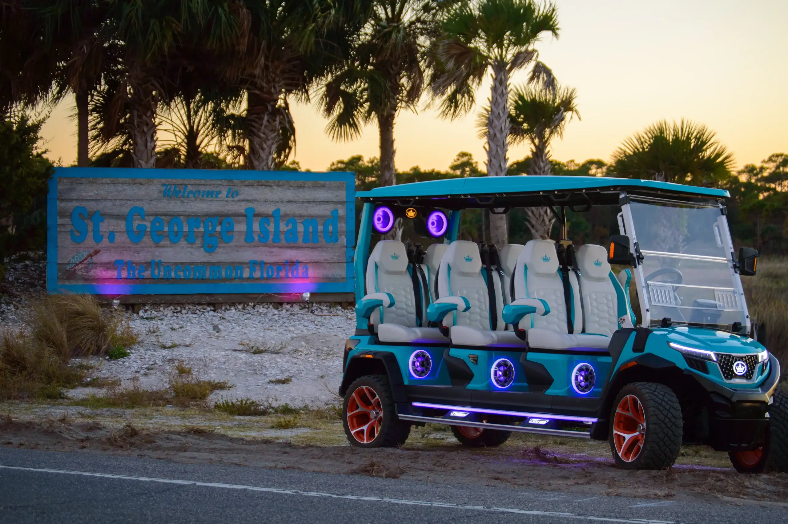 Cruising St. George Island just got a serious upgrade. This is not your typical rental cart, it is designed for comfort, style, and a full island experience.